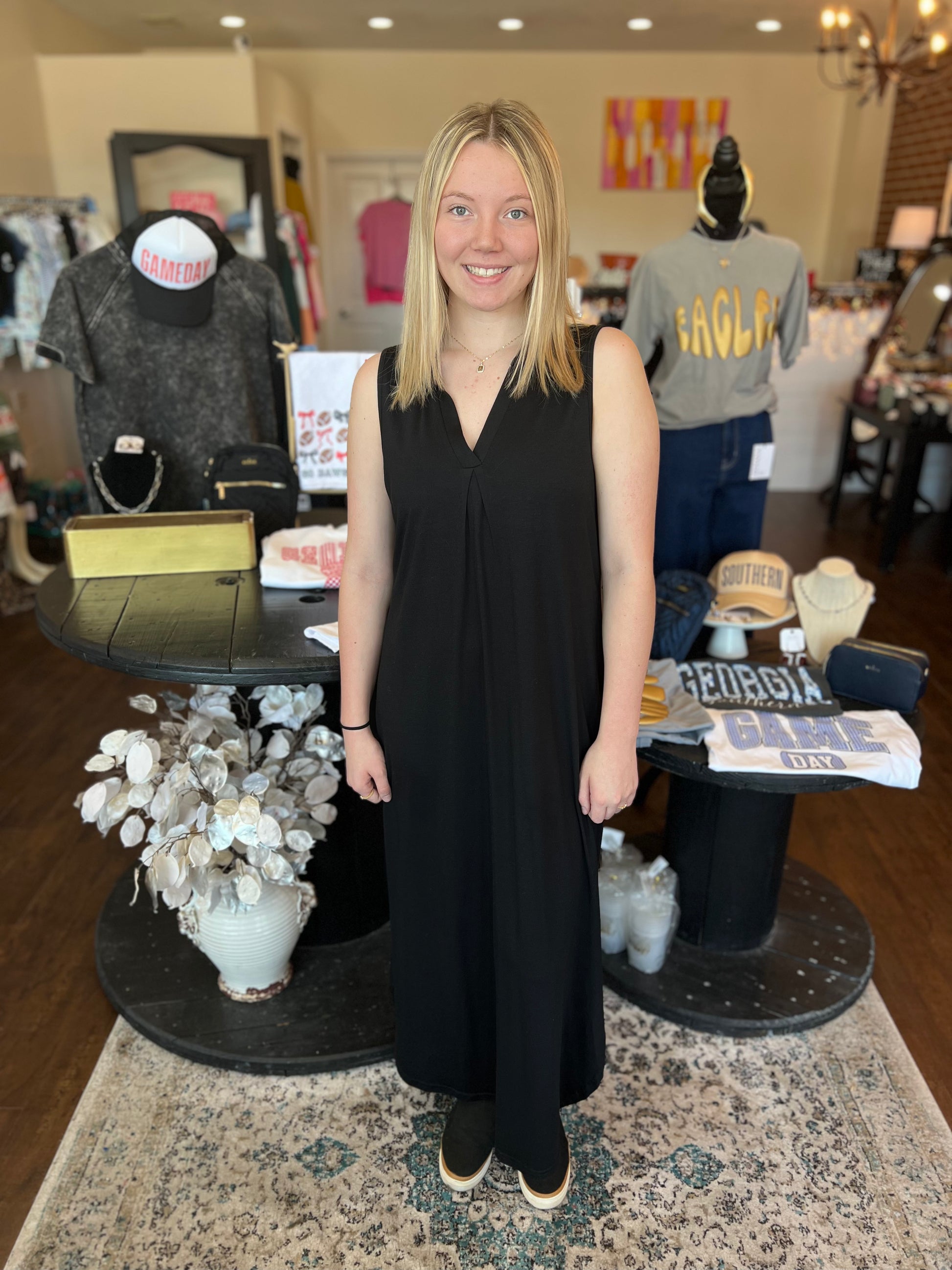 Black Collared V-Neck Dress